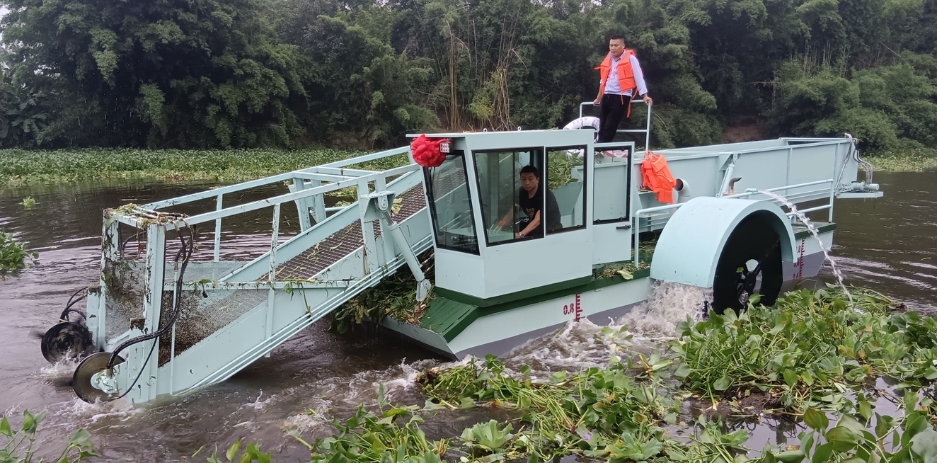 廣西玉林九洲江管委會(huì)購(gòu)買(mǎi)的DFSHL110型全自動(dòng)水葫蘆打撈船